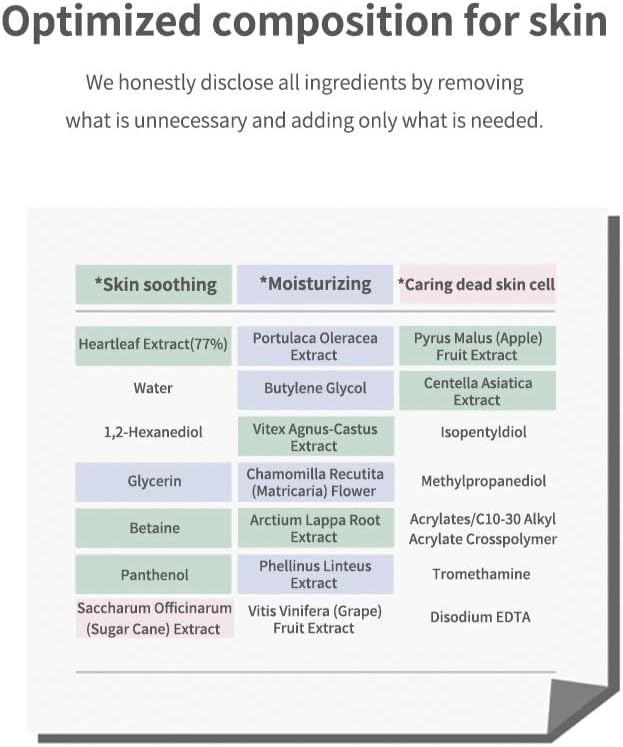 Formulated with Natural Ingredients: Contains 77% Heartleaf Extract grown and harvested in Korea. Cruelty-free, Vegan, Paraben Free.